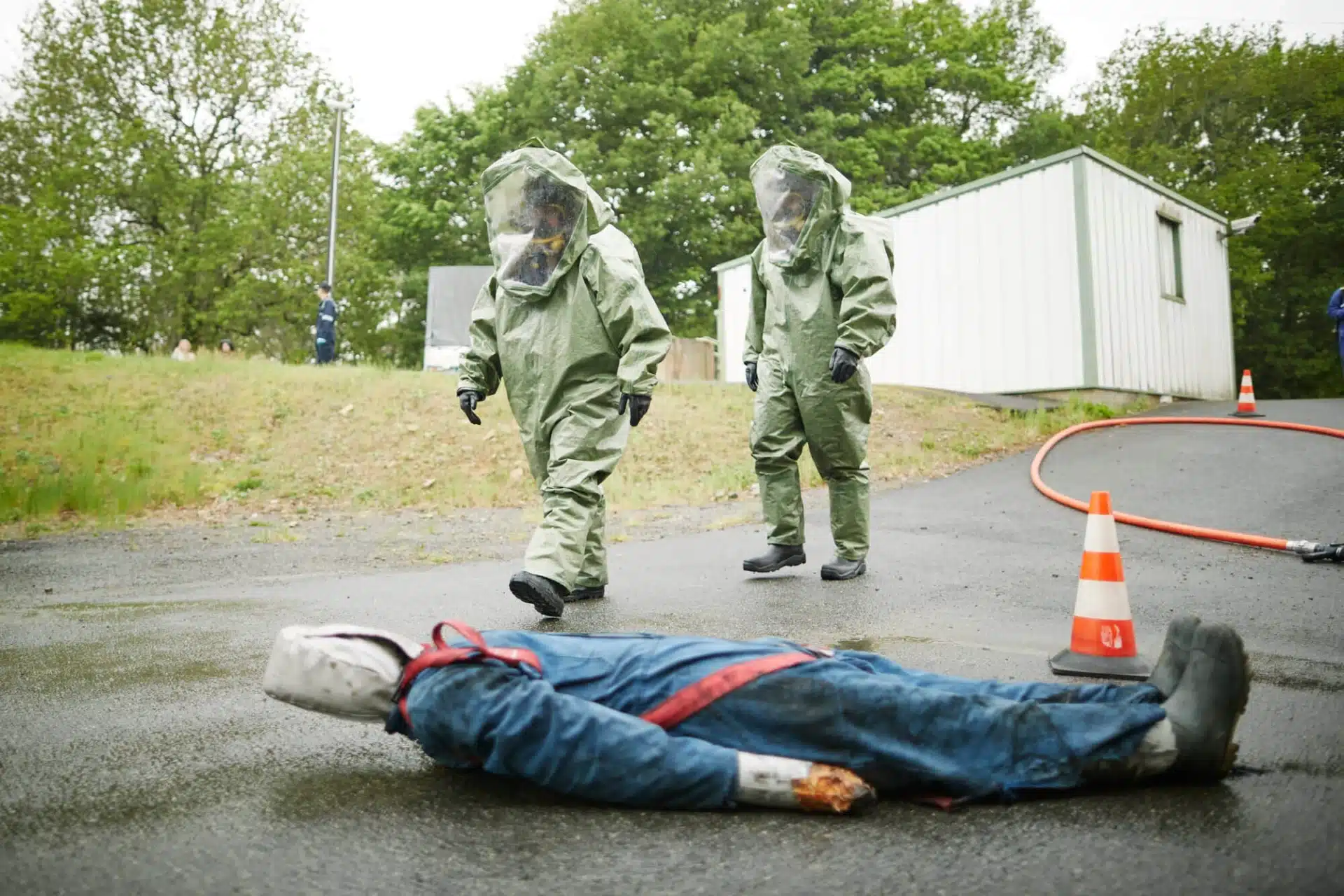 Toute personne pouvant être amenée à porter un scaphandre de protection chimique dans le cadre de son activité professionnelle