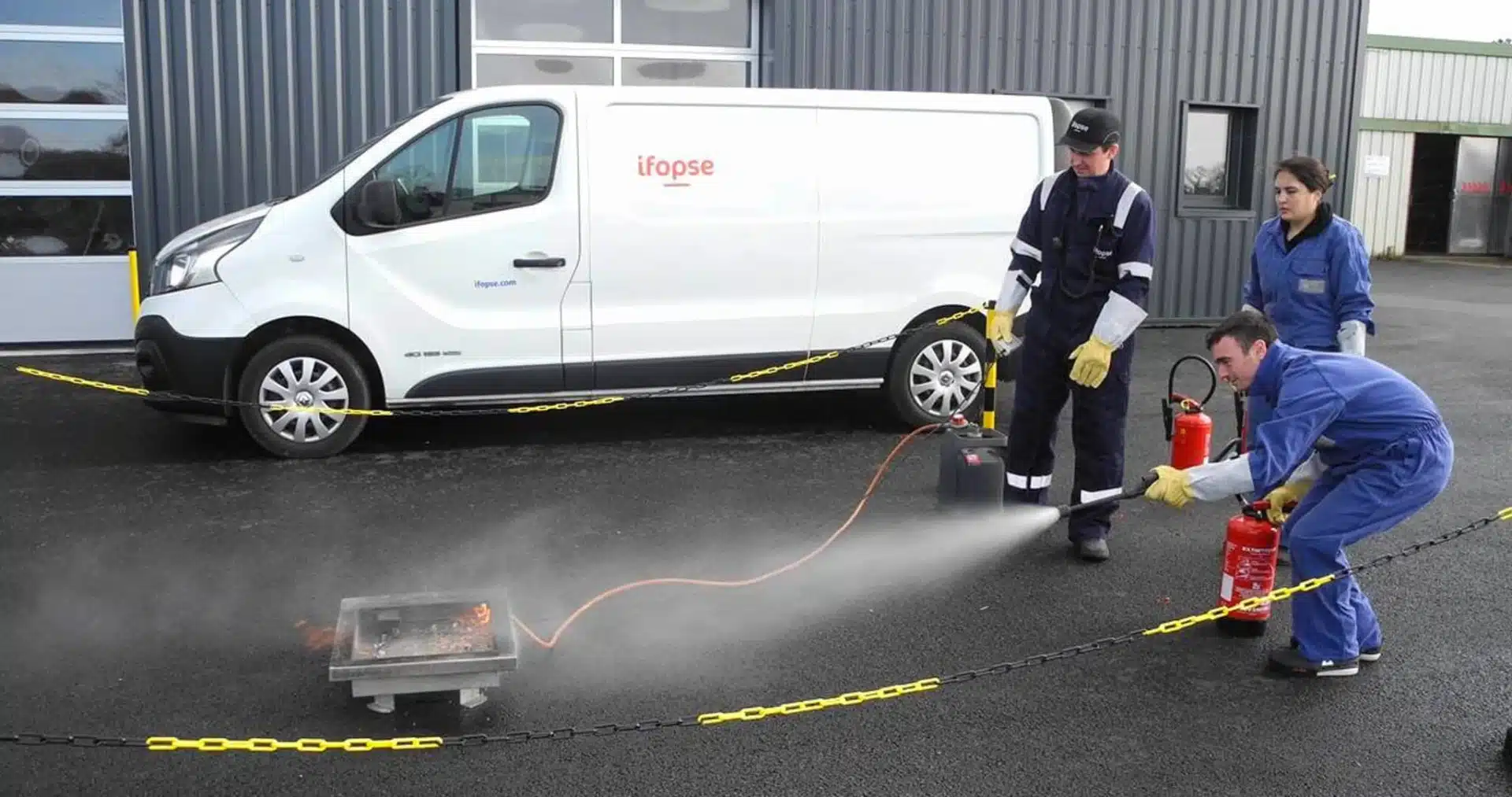 - Mise en œuvre de l’extincteur : extinction de différents départs de feu (électrique, gaz)